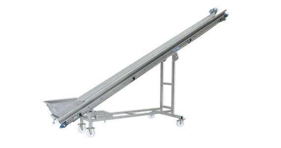 Mit dem beschichteten Tresterförderband können Pressrückstände bis zu 30 Grad Steigung von der Presse in einen Container oder Anhänger befördert werden.
