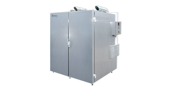 Das Gehäuse, der Grundrahmen und der Produktbereich sind komplett aus Edelstahl gefertigt. Ein Trockenschrankwagen mit 50 Stk. Edelstahlhorden mit 60x60mm Lochung ist im Serienumfang enthalten. Die Steuerung erfolgt über ein einstellbares Temperatur- und Zeitprogramm, zusätzlich über die Kammerluftfeuchte. Je nach Rohware können verschiedene Prozessparameter einfach umgestellt werden. Automatischer Trocknungsprozess.